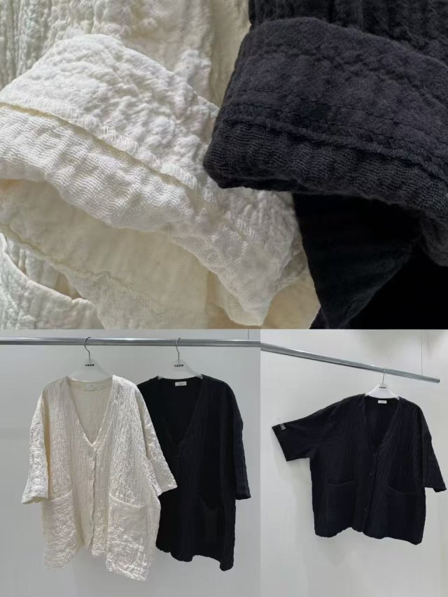 粒粒紋布開叉素色上衣