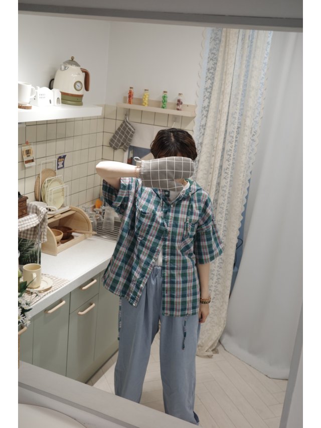 【BY BODYSFOOD】圓領格仔兩袋蝙蝠袖恤衫