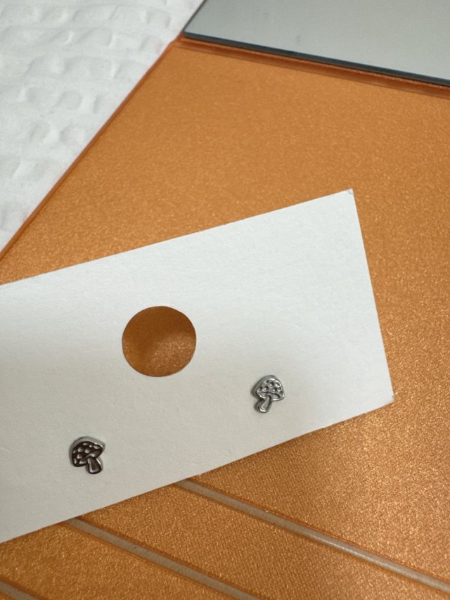 【醫療鋼】銀色磨菇耳環