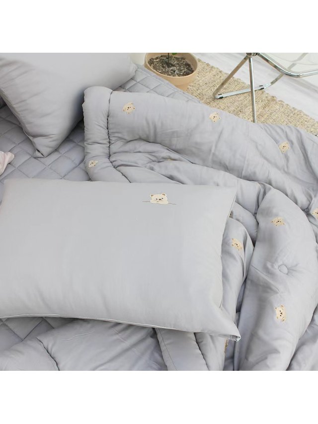 【韓國棉被】刺繡表情小熊莫代爾枕頭套 *