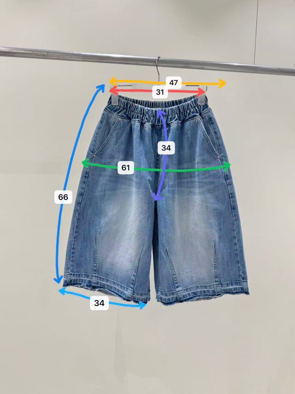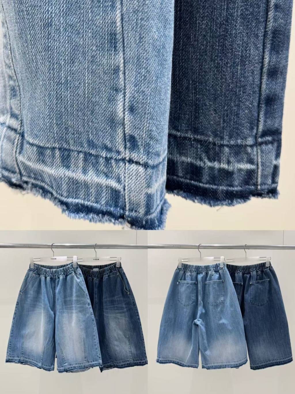 全橡筋不修邊牛仔五分短褲
