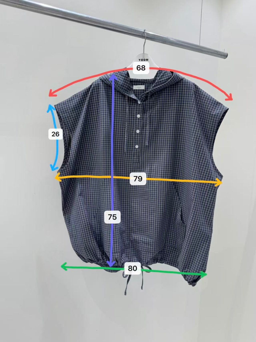 格仔帶帽外搭背心