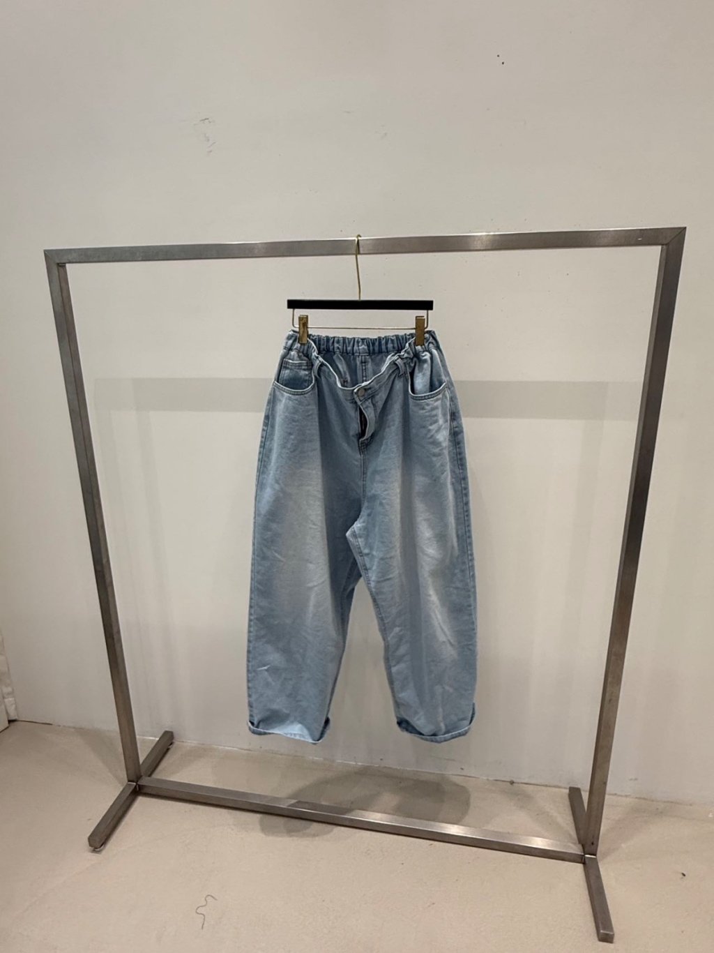 淺洗水橡筋腰牛仔直腳褲